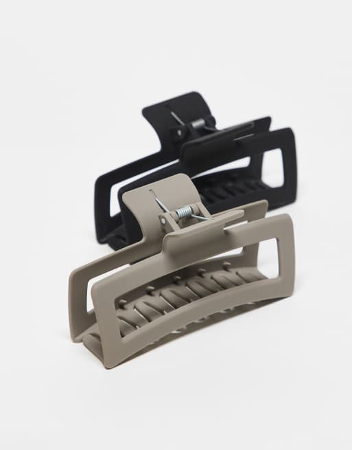 Pack de 2 pinzas para el cabello de color negro y gris rectangulares de PIECES