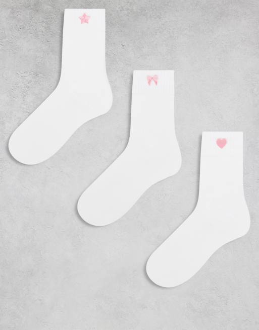 Pack de 3 pares de calcetines blancos con bordados dorados de Pieces