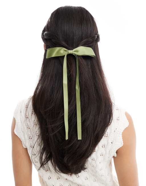 Pasador para el cabello con lazo verde de doble cinta de satén de PIECES