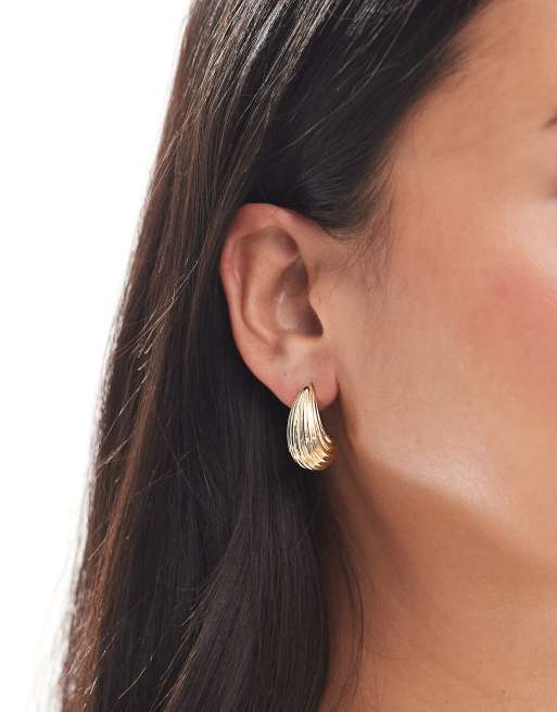 Pendientes de aro dorados con diseño de lágrima estriada de Pieces