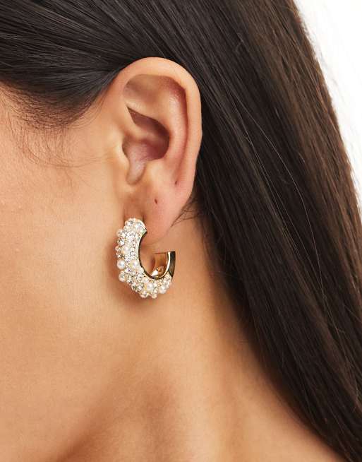 Pendientes de aro dorados con perlas y cristales de PIECES