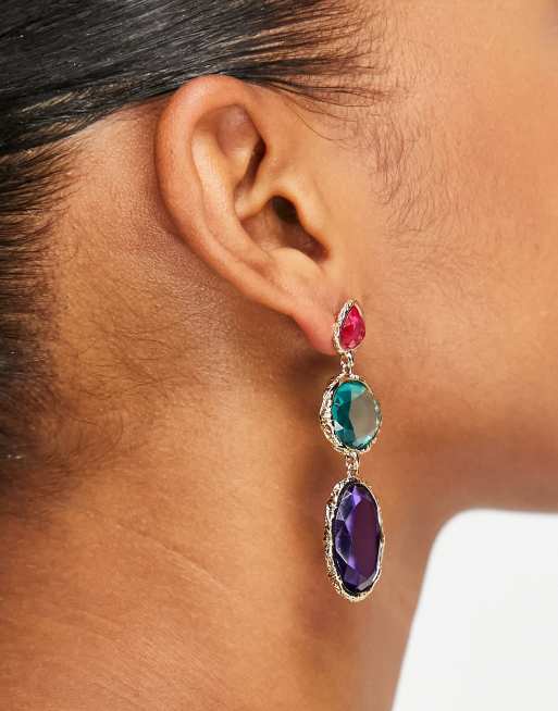 Pendientes largos dorados con piedras luminosas de diferentes tamaños de Pieces