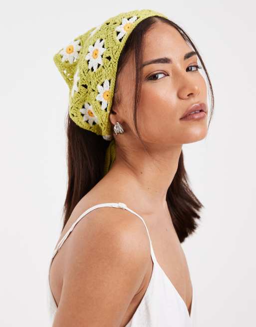 Pieces - Diadema verde claro con estampado de margaritas de croché