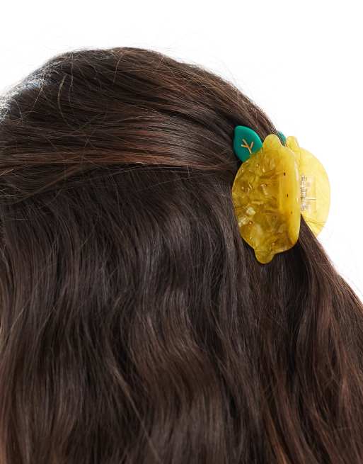 Pinza para el cabello amarilla en forma de limón de Pieces