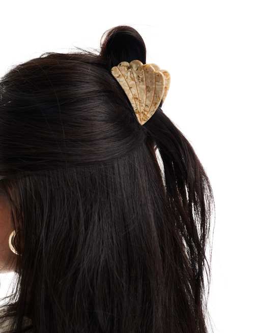 Pinza para el cabello beis coco marmolado con diseño de concha de PIECES