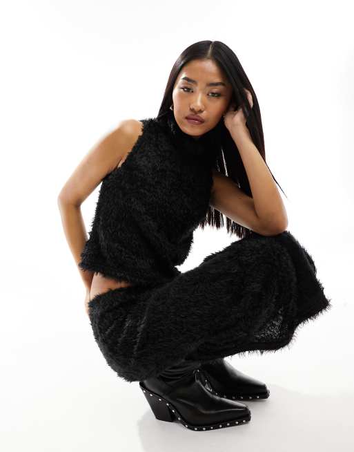 Top negro con cuello alto de punto mullido de Pieces (parte de un conjunto)