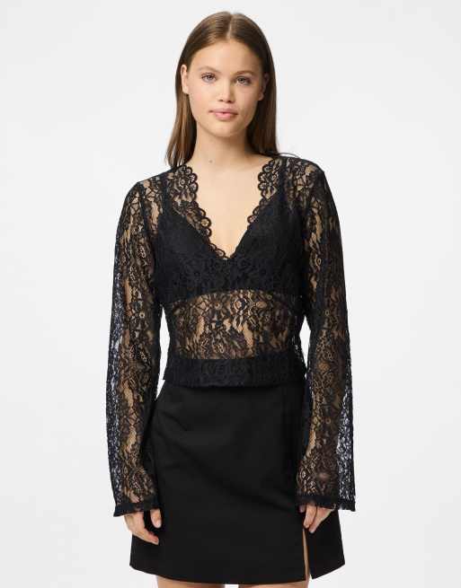 Top negro de manga larga de Pieces