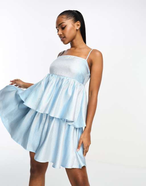 Vestido azul pastel estilo babydoll de tirantes con acabado metalizado de Pieces