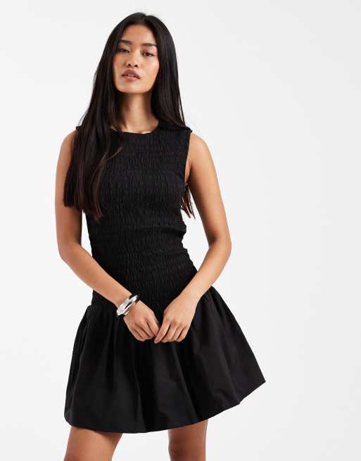 Vestido corto negro sin mangas con bajo abullonado de Pieces