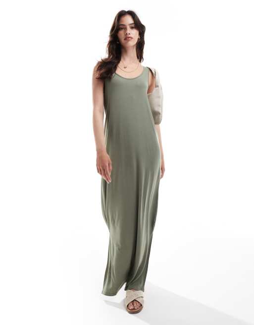 Vestido largo verde con cuello ancho de PIECES