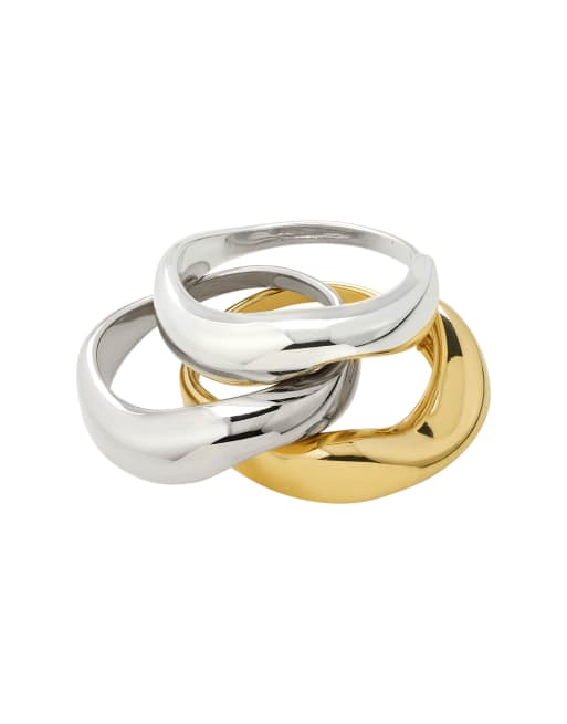 Set de anillos 3 en 1 chapados en plata Nova de Pilgrim