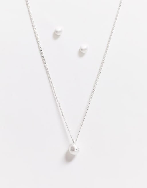 Set de regalo de collar chapado en plata con pendientes de plata con perlas de Pilgrim