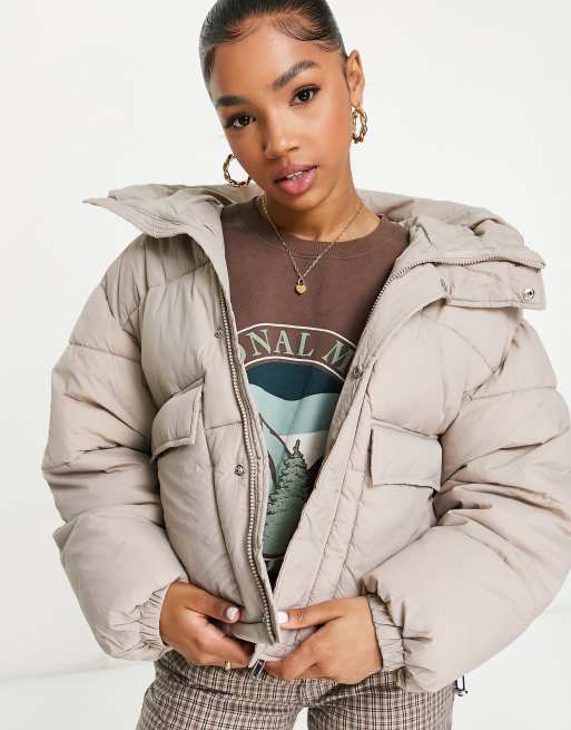 Abrigo de plumas marrón grisáceo con bolsillos extragrandes de Pimkie