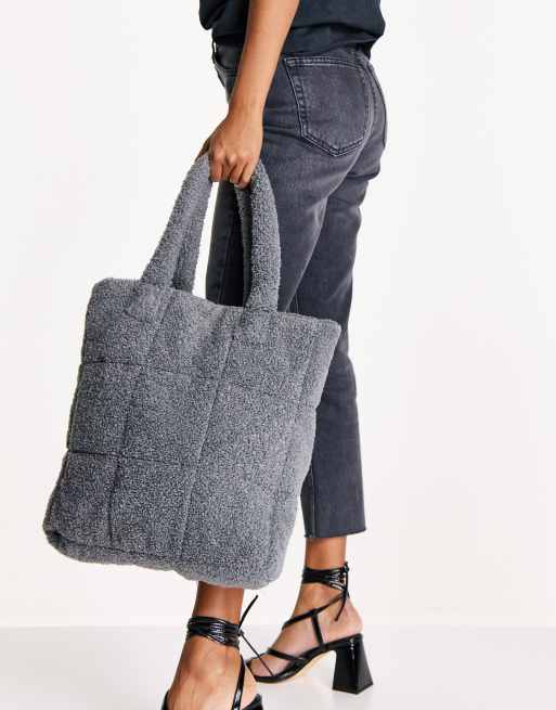 Bolso tote gris oscuro con diseño acolchado de sherpa de Pimkie