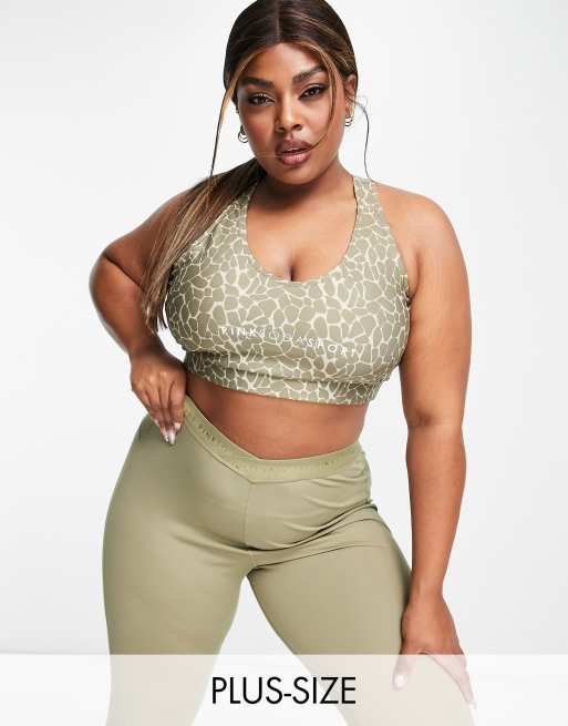 Sujetador deportivo verde oliva de sujeción ligera con estampado animal de Pink Soda Plus