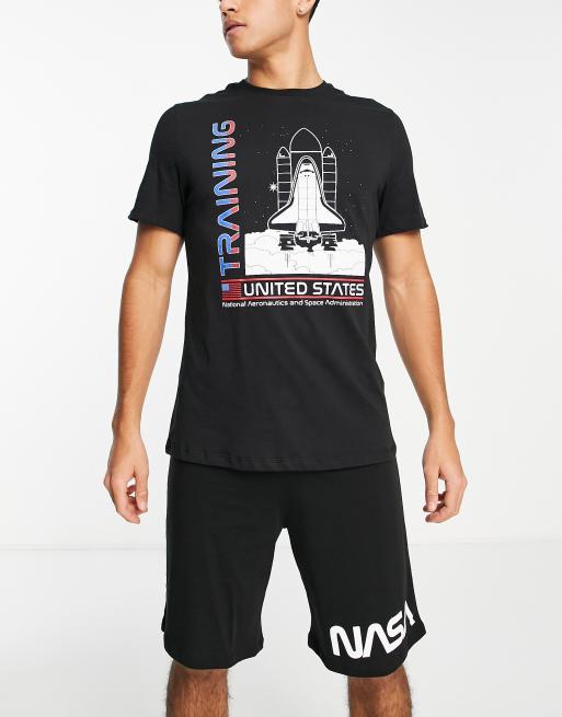 Pijama negro y gris de camiseta y pantalones cortos de con diseño de NASA Shuttle Training de Poetic Brands