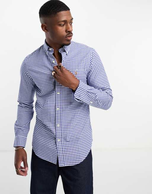 Camis Oxford azul y blanca a cuadros vichy de corte slim con logo de Polo Ralph Lauren