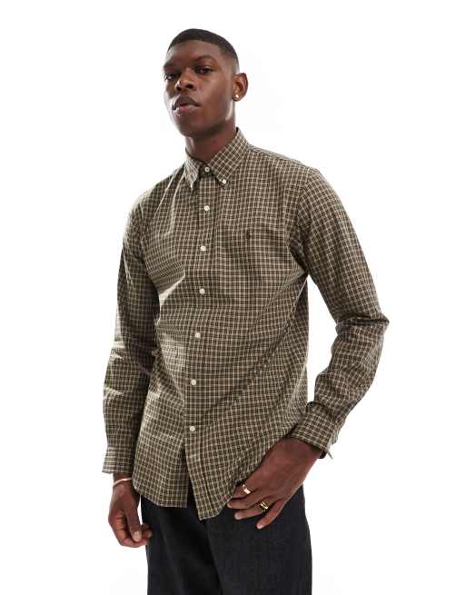Camisa color tostado caqui a cuadros con logo de popelina Icon de Polo Ralph Lauren