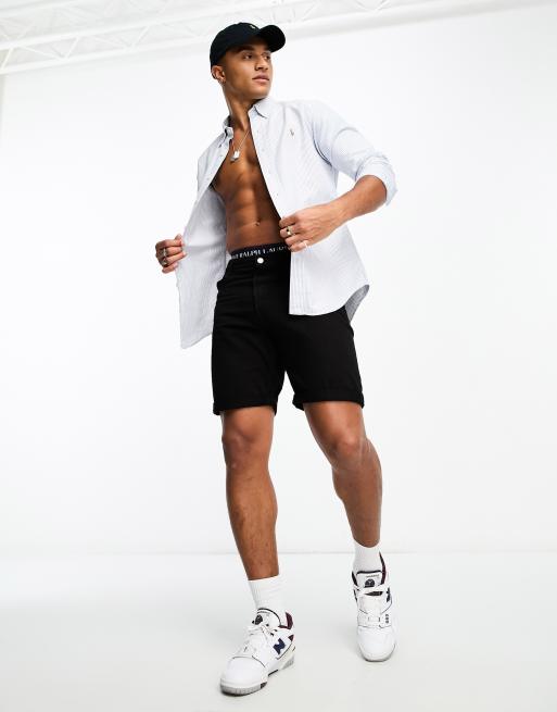Camisa Oxford azul y blanca a rayas de corte custom con logo de Polo Ralph Lauren