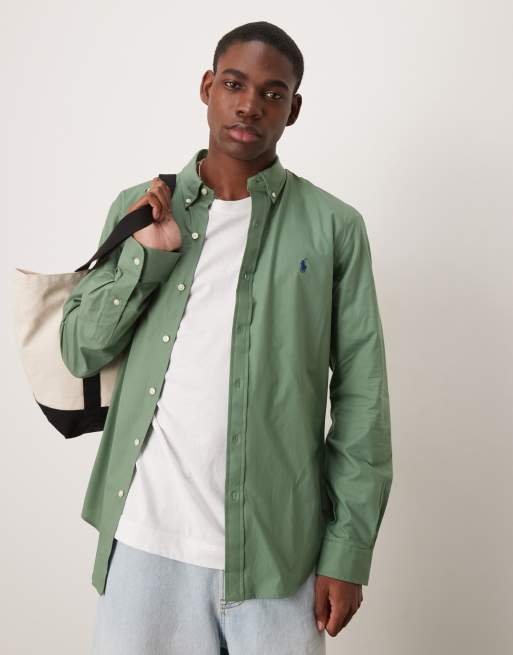 Camisa verde claro de corte slim con logo de popelina elástica Icon de Polo Ralph Lauren