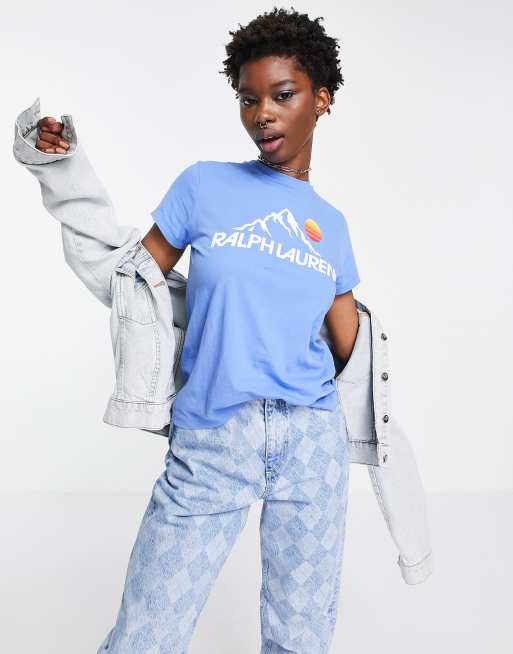 Camiseta azul con logo y detalle de montaña de Polo Ralph Lauren