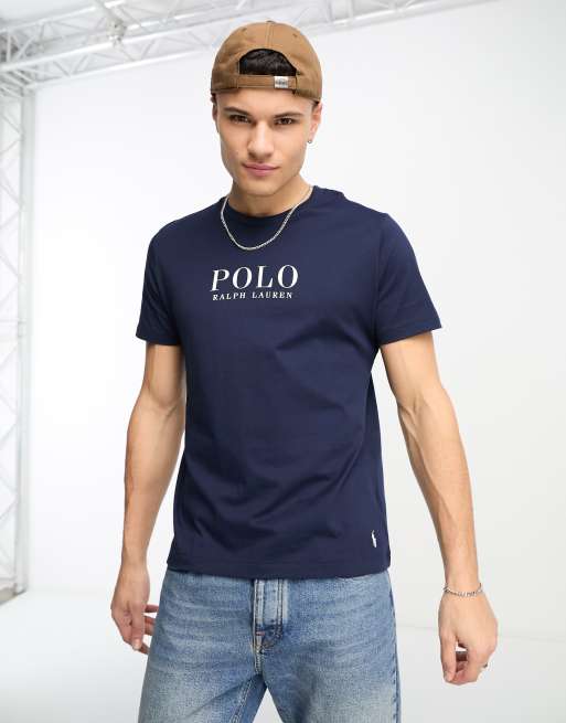 Camiseta azul marino de estar por casa con logo de texto en el pecho de Polo Ralph Lauren