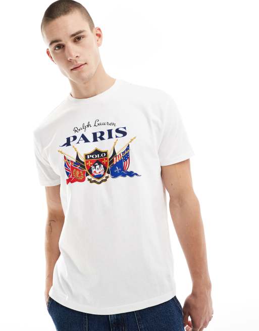 Camiseta blanca con estampado "Paris" con logo y escudo de Polo Ralph Lauren