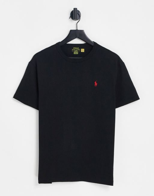 Camiseta negra extragrande con logo de caballo de tejido grueso de Polo Ralph Lauren