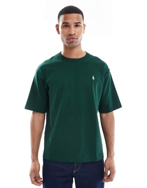 Camiseta verde oscuro holgada con logo de texto estampado en la espalda de tejido grueso Icon de Polo Ralph Lauren