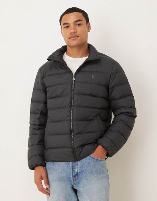 Chaqueta acolchada negra ligera aislante con logo de icono de Polo Ralph Lauren