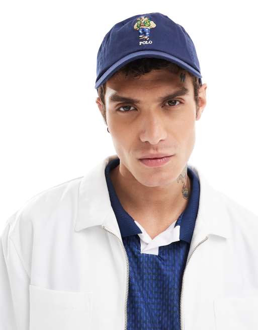 Gorra de béisbol azul marino con logo bordado de oso universitario de sarga de Polo Ralph Lauren