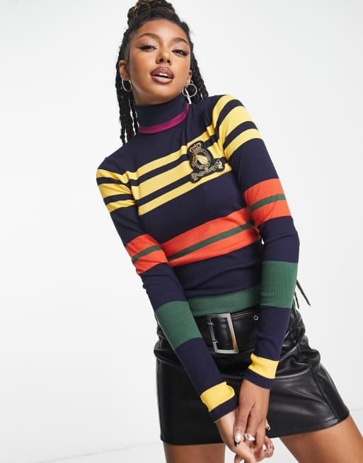 Jersey a rayas de manga larga con cuello vuelto y logo de escudo de Polo Ralph Lauren