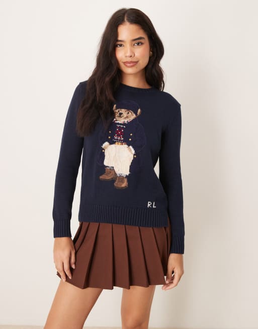 Jersey azul marino con estampado de oso de punto de algodón de Polo Ralph Lauren