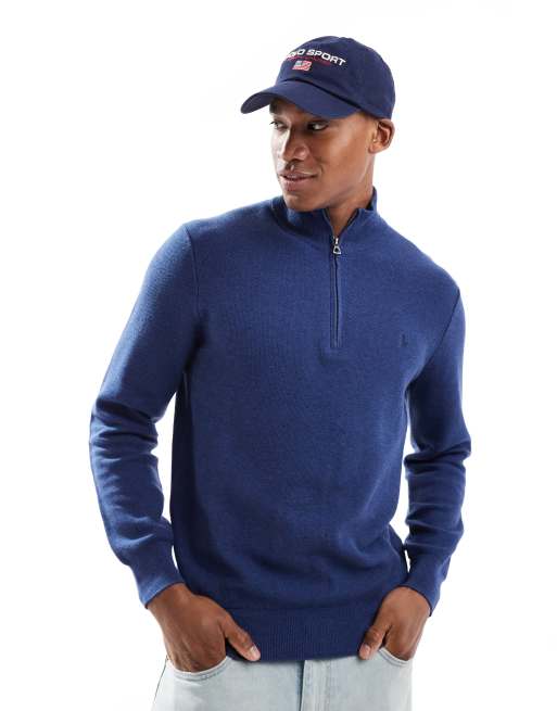 Jersey azul marino jaspeado con media cremallera y logo de punto de algodón Icon de Polo Ralph Lauren