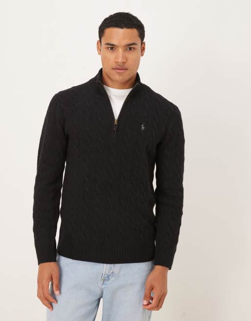 Jersey negro con media cremallera y logo de punto de ochos de lana Icon de Polo Ralph Lauren