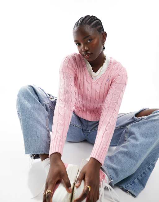 Jersey rosa con cuello de pico y logo de punto de ochos de Polo Ralph Lauren
