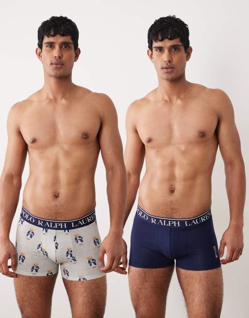 Pack de 2 calzoncillos bóxer de color azul marino y gris con estampado gráfico de Polo Bear de Polo Ralph Lauren
