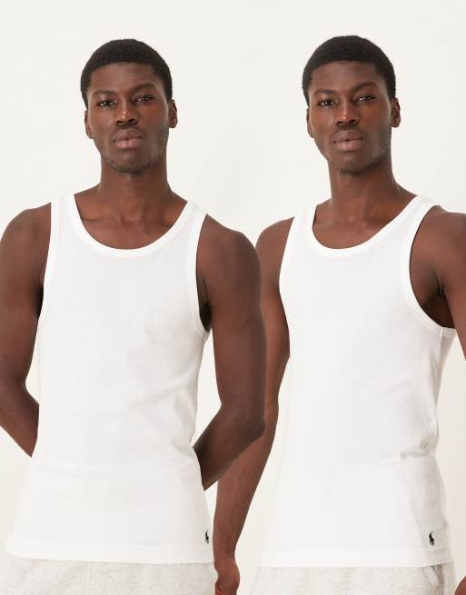 Pack de 2 camisetas de estar por casa blancas de tirantes con logo de icono de Polo Ralph Lauren