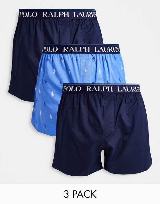 Pack de 3 calzoncillos bóxer azul marino con logo en la cinturilla de Polo Ralph Lauren