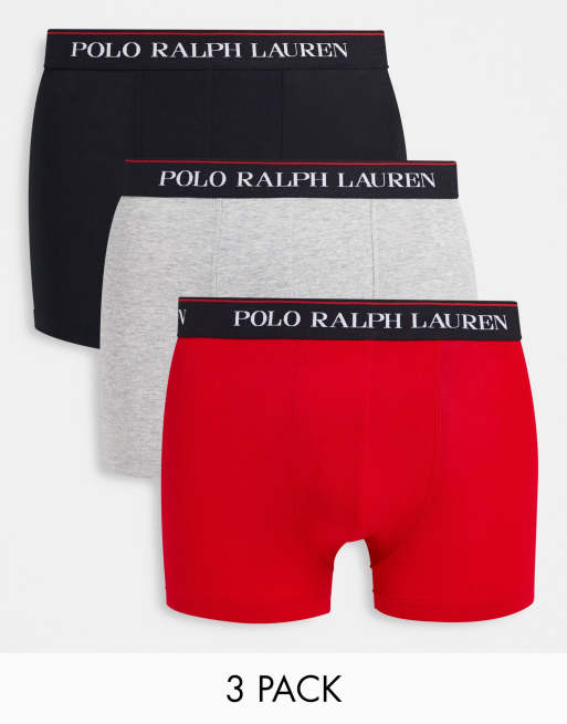 Pack de 3 calzoncillos de color gris, rojo y negro con logo en la cinturilla de Polo Ralph Lauren