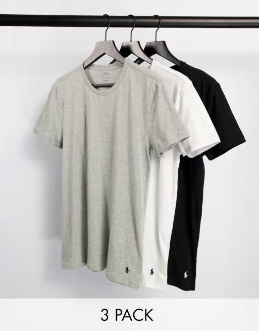 Pack de 3 camisetas de estar por casa en negro, gris y blanco con logo de Polo Ralph Lauren