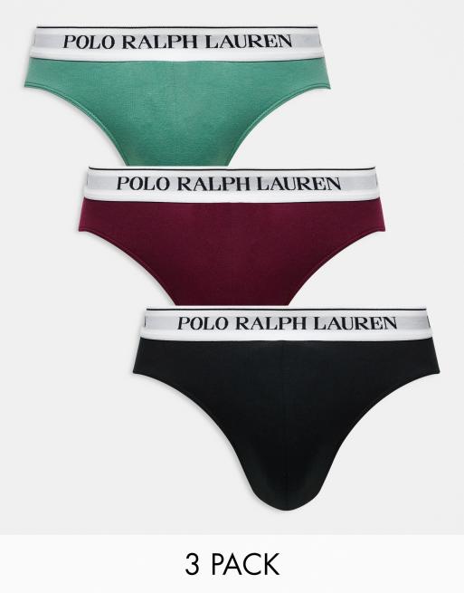 Pack de 3 calzoncillos slip de color verde, rojo y negro con logo en la cinturilla de Polo Ralph Lauren
