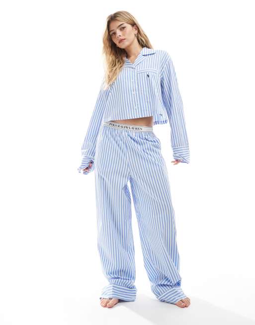 Pantalones de pijama azules a rayas con cinturilla elástica con logo de popelina de Polo Ralph Lauren