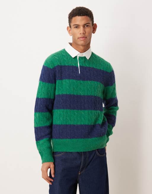 Polo de rugby a rayas verdes y azul marino de punto de Polo Ralph Lauren