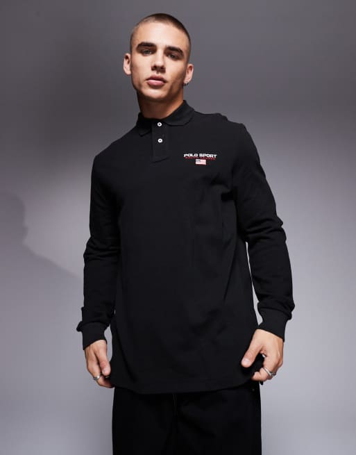 Polo negro de manga larga con logo de la colección cápsula Sport de Polo Ralph Lauren