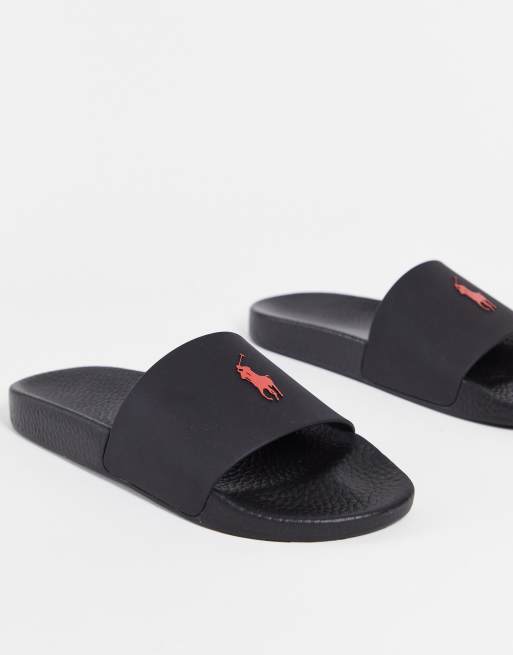 Sandalias negras con logo de caballo de Polo Ralph Lauren