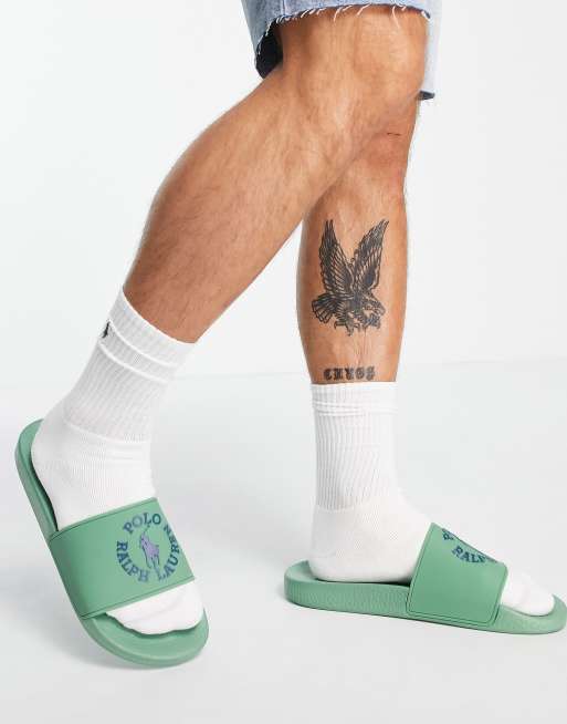 Sandalias verdes con logo circular de la colaboración exclusiva de Polo Ralph Lauren x ASOS