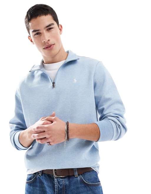Sudadera azul claro jaspeado con media cremallera y logo de punto doble Icon de Polo Ralph Lauren