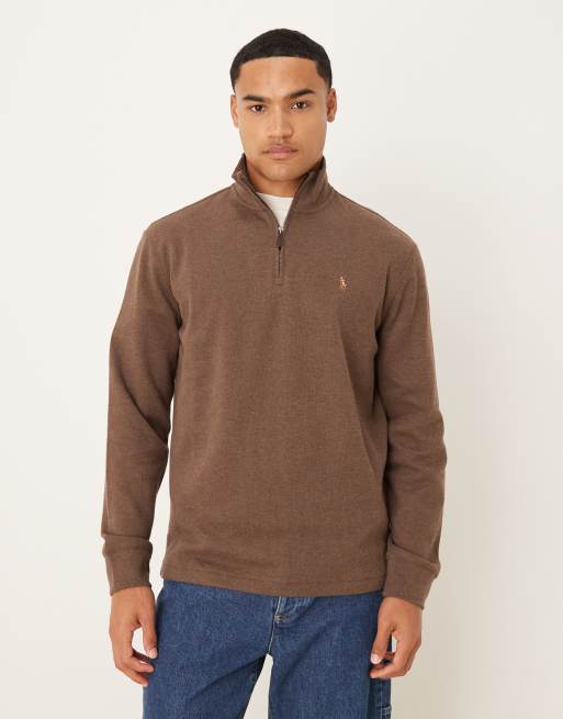 Sudadera marrón con media cremallera y logo de punto doble de Polo Ralph Lauren