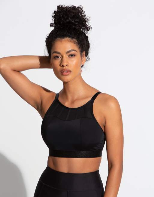 Sujetador de copas grandes negro deportivo sin aros con relleno y cuello alto Energy de Pour Moi